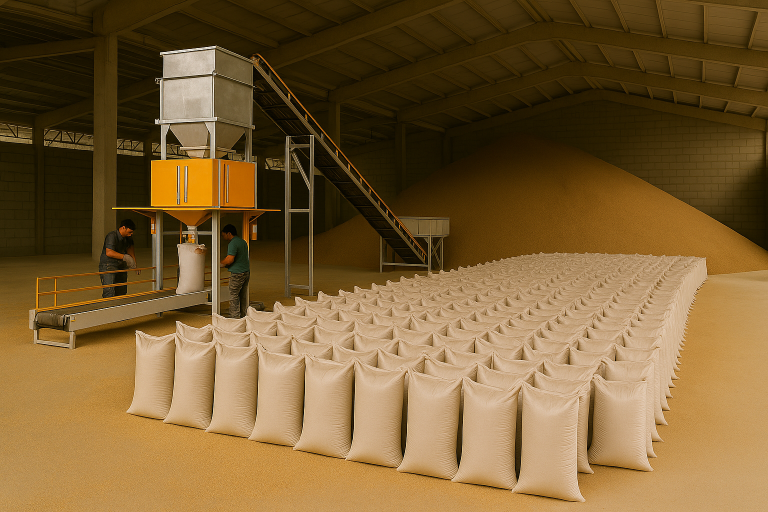 بسته بندی و کیسه گیری محصولات در منطقه آزاد بندرانزلی، با استفاده از تجهیزات مدرن و فرآیندهای کنترل کیفی دقیق، آمادهسازی برای عرضه در بازارهای خارجی
